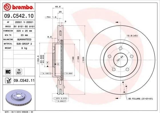 - BREMBO 09.C542.11 підходить до марок /моделей авто: