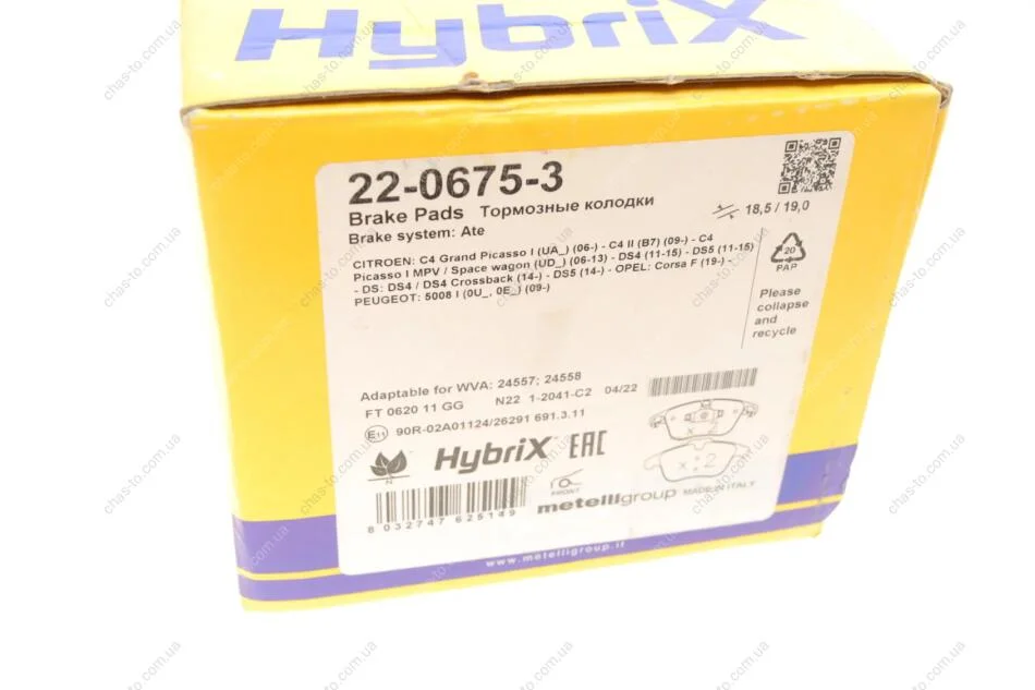 Комплект гальмівних колодок Metelli OE 1609987980, 1617273380, 1647862580 22-0675-3