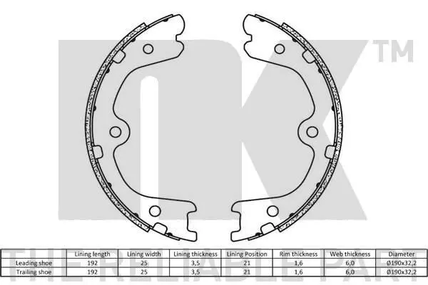 Колодки гальмівні стояночного гальма NK OE 44060EA025, 44060EA026 2722798