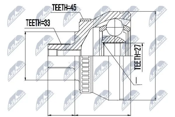 ШАРНІР РІВНИХ КУТОВИХ ШВИДКОСТЕЙ | AUDI A6 1.9TDI 85KW ENG.AJM 00-, PASSAT 1.9TDI 85KW ENG.AJM/ATJ 98- NTY NPZAU043