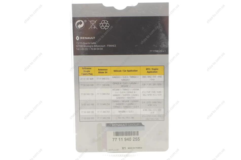 - RENAULT 7711940255 підходить до марок /моделей авто: