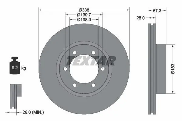 Диск гальмівний передн Лів/Прав (без маточини) LEXUS GX TOYOTA FORTUNER, HILUX VI, HILUX VII, LAND TEXTAR (Текстар) 92137300