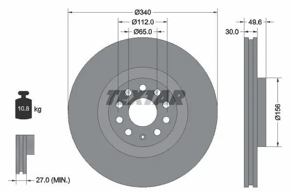 Диск гальмівний передн Лів/Прав AUDI A3, Q2, Q3, TT CUPRA ATECA, FORMENTOR, LEON, LEON SPORTSTOURER TEXTAR (Текстар) 92229803