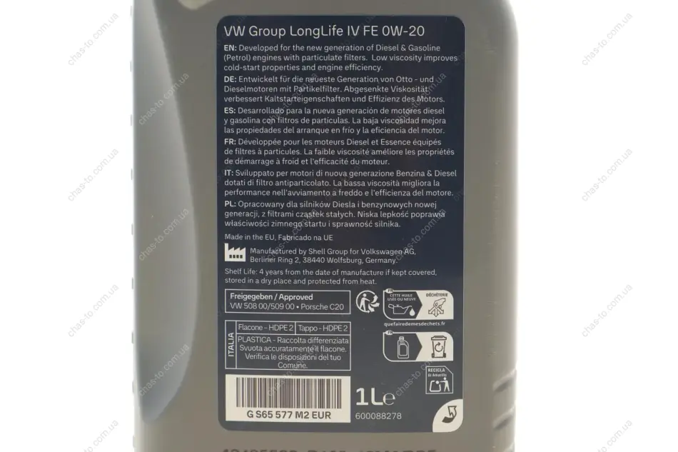 Олива моторна LongLife IV SAE 0W20 (1 Liter) (Multi Logo) VAG (ВАГ) GS65577M2