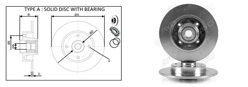 Диск гальмівний задній (з підшипником) PSA C3 II/III/C4 I/DS3/2008/207/208/307 2004- APLUS (Аплюс) 61585BAP