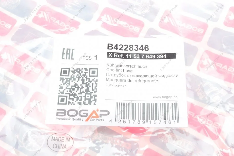 Патрубок системы охлаждения BOGAP B4228346