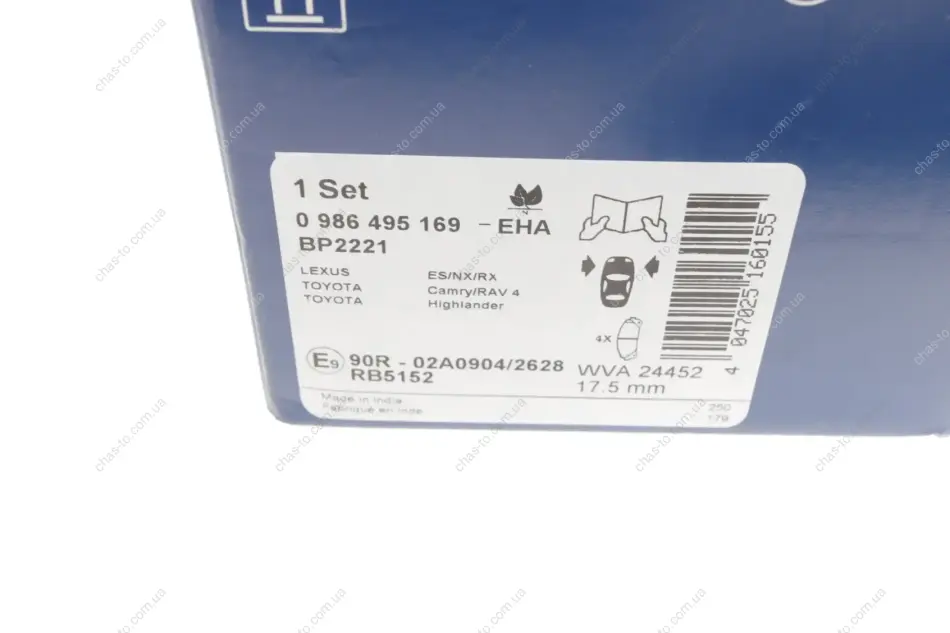 Колодка торм. диск. LEXUS RX передн. BOSCH (Бош) OE 0446533490, 0446548220, 0446548240 0 986 495 169