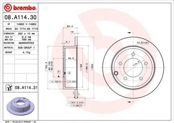 - BREMBO 08.A114.31 подходит к маркам/моделям авто: