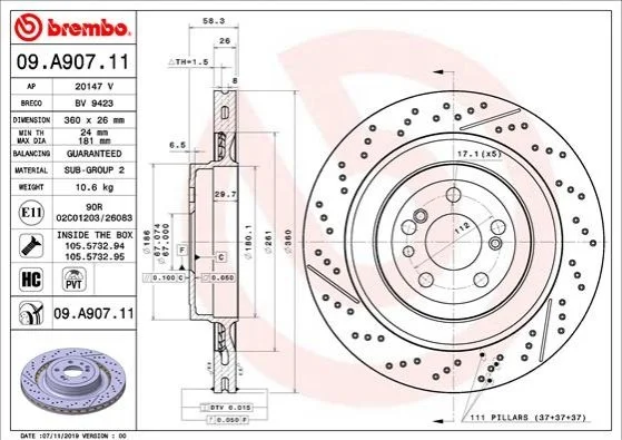 Диск гальмівний передн Лів/Прав MERCEDES C (C204), C (W204), C T-MODEL (S204), E (A207), E (C207), E (W212), E T-MODEL (S212), SLC (R172), SLS AMG (C197), SLS AMG (R197) 1.6-6.3 01.07- BREMBO (Брембо) 09A90711