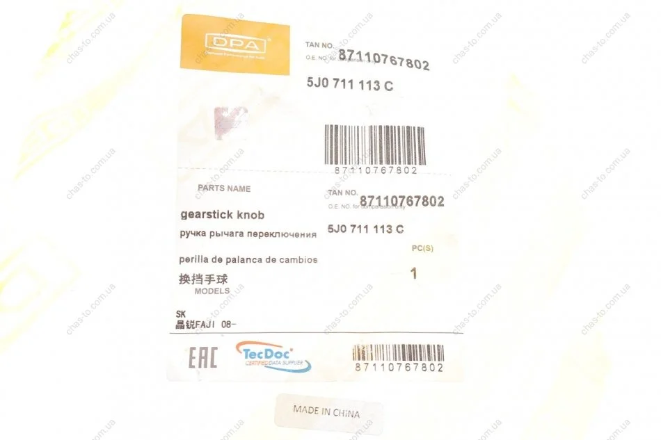 Рукоятка рычага КПП в сборе DPA 87110767802