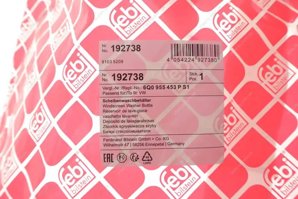 Бачок склоомивача з насосом та кришкою VAG (FEBI) FEBI BILSTEIN (Феби) 192738