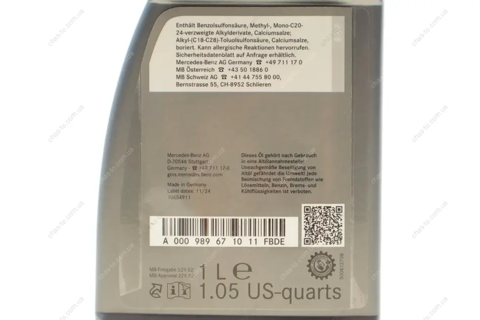 Олива моторна MB 229.52 1шт (1 л) SAE 5W-30 MB 229.52 MERCEDES-BENZ (Мерседес) 000989671011FBDE