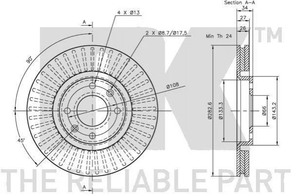 Диск тормозной перед. (283x26) PSA C4/Berlingo/C3/Xsara/DS3/DS5/DS4/C5/2008/Partner/5008/3008/207/308/307/1007/Ranch/206 (03-17) NK 201927