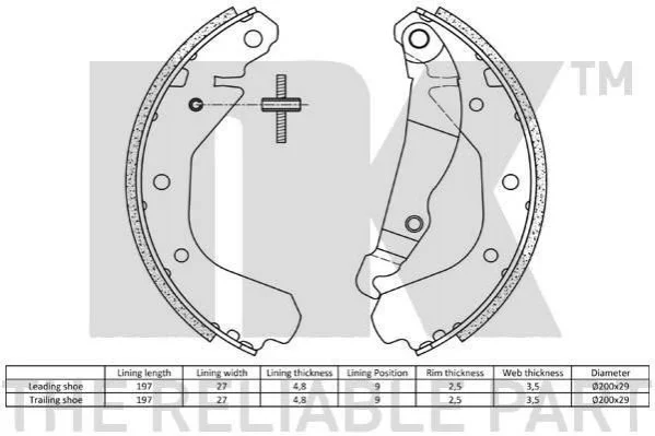 Торм.колодки задние 200х29 Opel Kadett D 1.2-1.3/Corsa -84(без саморегулировки) NK OE 1605592, 1605593, 1605674 2736413