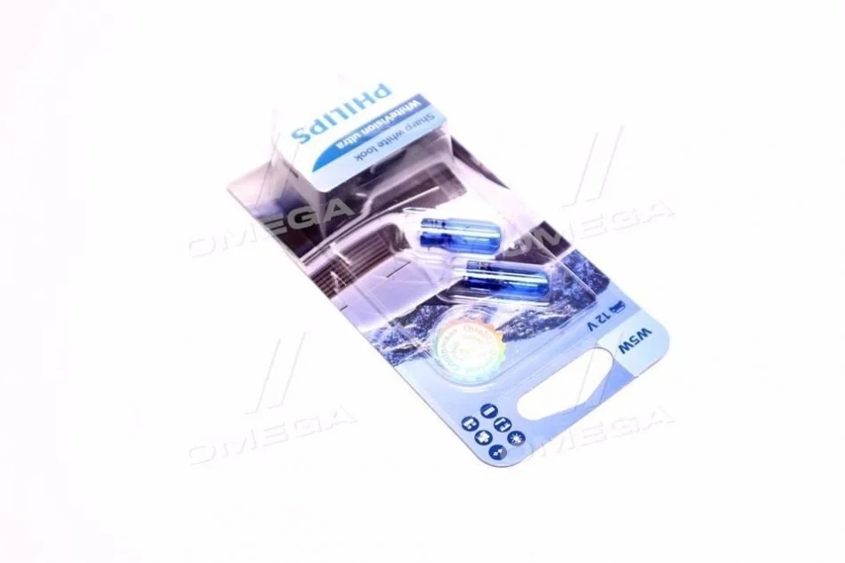 Автолампа WhiteVision Ultra W5W W2,1x9,5d 5 W синяя PHILIPS (Филипс) 12961WVUB2