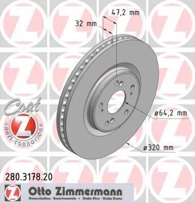 Диск тормозной перед HONDA ACCORD 2.4 08- ZIMMERMANN (Зимерман) 280317820